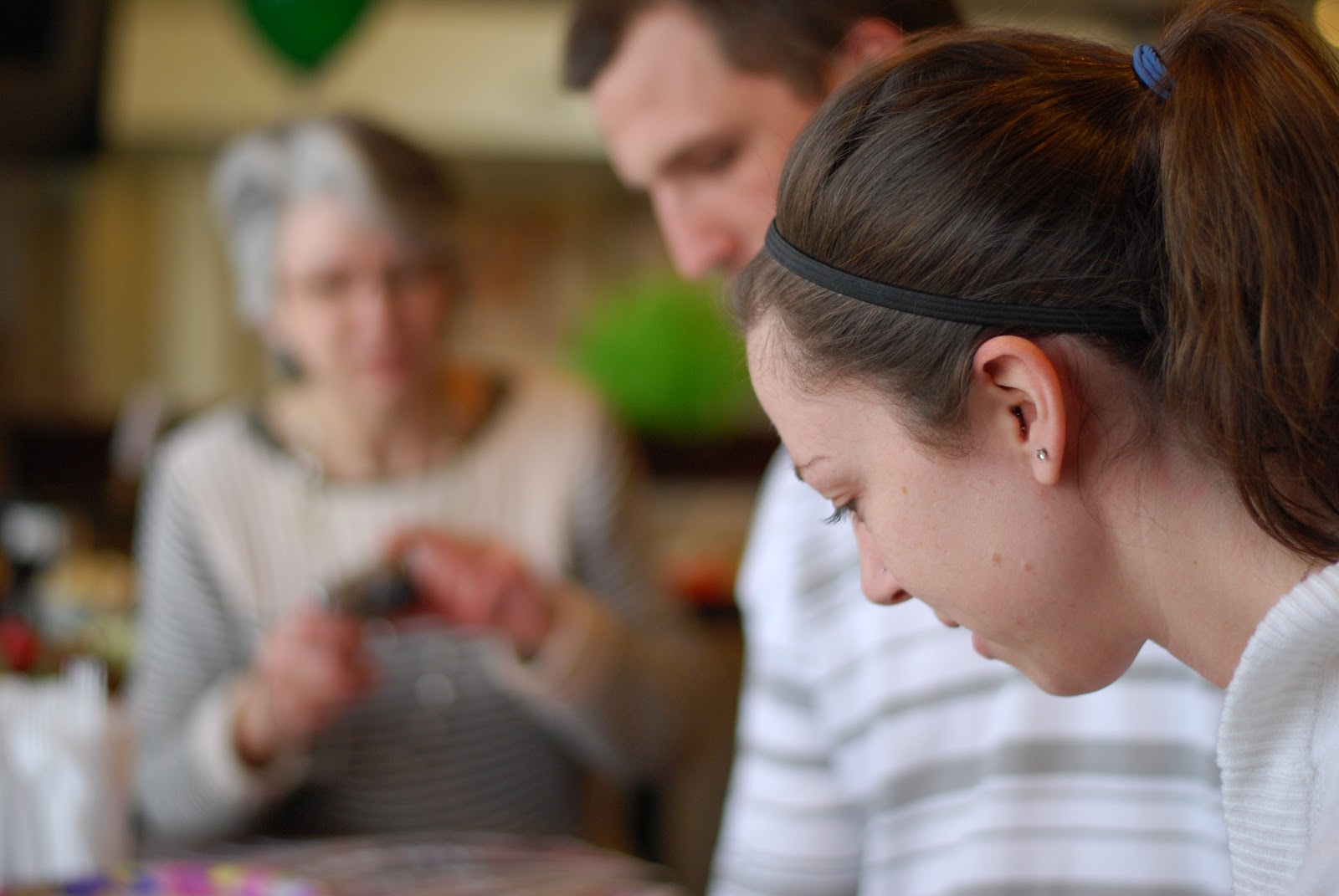 My older sister is getting married!! :D I'm so excited for her, the big day is March 17th and it is coming up SO fast! Last weekend we had the pleasure of throwing her a surprise bridal shower. I thought for sure she had figured it out but to my surprise (and hers) she didn't even have an inkling! *pat on the back* I've decided that while I like planning parties, surprise parties are not my thing! Way to much stress. My plan A was a bust so at the last minute we were trying to scrape up some semblance of a plan B. A BIG thanks goes to Shannon for stepping it up and getting her to the church without having to spill the beans :D As the MOH I ran the show but then also tried to step aside and snap some pics along the way. Thanks to my other trusty bridesmaids we had some great food and a couple little games to go along with opening the presents. I didn't get a picture of the stack of presents but I think they are well on their way to setting up house!